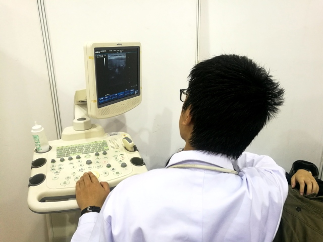 展出的准备前期,公司的老师和志愿者就开始忙碌了起来,搬运诊室床,推B超机,大家忙的不亦乐乎。本次展出的展区由杜文炜老师在一旁统筹安排,朱晓红老师做超声的指导工作。而主要负责展出任务的则是来自16级和17级的志愿者们。B超的操作由陈诗画和郭嘉俊一男一女负责。其余4名同学负责现场的管理。这充分凸显了以员工为主体,培养独立自主能力的目标。