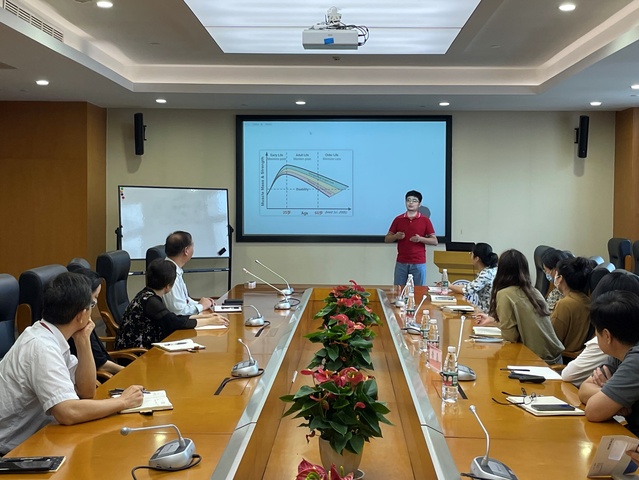 护管公司的白洁老师分享了《医学统计学》中的“总论”一节,介绍了从全局的角度远眺统计学和研究设计原则。康复公司的蔡明老师带来了《运动生理学》中的“肌少症及运动防治”一节,讲述了肌少症的概述,发病机制以及肌少症的运动防治方法等。影像公司的黄辰老师讲授内容是《核医学技术及设备》中“甲状腺显像原理”一节,讲解了甲状腺显像的两种显像剂的特征、检查设备,并通过病例分析说明二者在临床应用中的差别。随后,三位老师分别进行了现场教学反思。