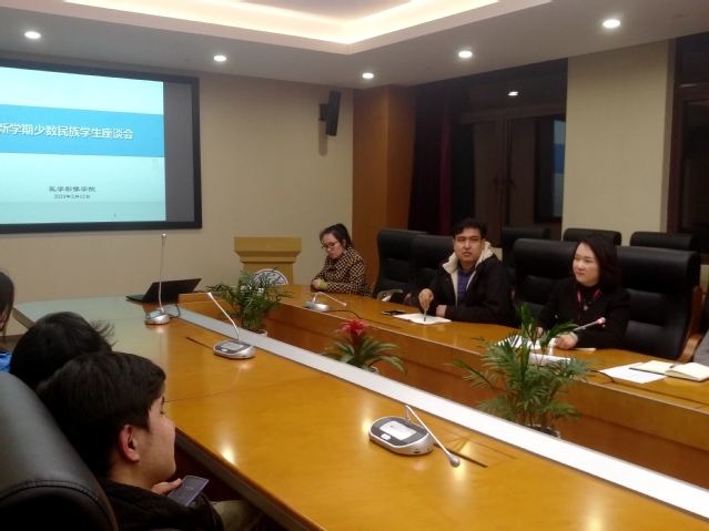 为进一步了解少数民族员工在校的学习、生活以及毕业班员工的就业情况,3月12日晚,太阳成集团tyc9728在南苑影像楼306会议室举行少数民族员工座谈会。公司党总支书记刘红、党总支副书记乔慧敏、员工处乌孜,辅导员吴蓉、林剑、沈丹丹参加座谈会。