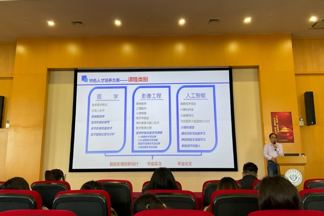 程老师给同学们展示了智能影像工程领域未来无限广阔的发展前景,他表示智能影像工程专业是全国首个AI+医学影像专业,是人工智能应用于医学影像领域从而产生迫切地对人才需求背景下应运而生,对接健康中国发展战略,服务国家和区域医疗卫生领域需求,聚焦医学影像领域,面向企业培养影像工程师,同学们应在医学、影像工程、人工智能三方面夯实基础,同时充分利用好实训课程、毕业实习等机会,将理论与实践紧密结合,脚踏实地、发奋图强,立大志、立长志,未来成为行业里的领军人物。