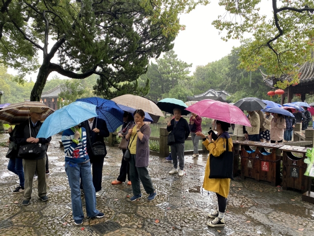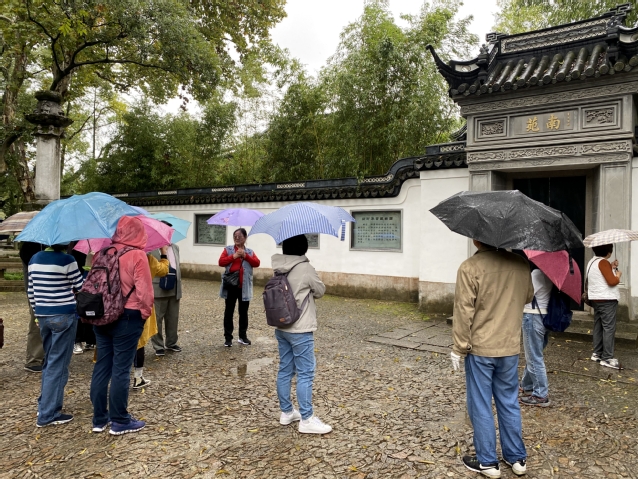 当天下午,医疗器械公司和太阳成集团tyc9728一行前往位于南翔镇的古猗园,该园建于明代嘉靖年间,至今已有500多年历史。在导游的指引下大家步入园内,伴随着蒙蒙细雨,老同志们流连于美景之下,兴致盎然,他们沿着木质连廊,徜徉在小桥流水和亭台楼阁之间,悠然漫步,欣赏园内的美景,相互之间聊着家常,心情得以放松下来,摆脱了城市的喧嚣,可谓怡然自得,一派祥和的景象。