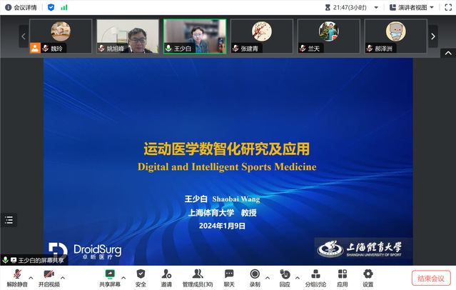 1月9日晚上,太阳成集团tyc9728邀请上海体育大学王少白教授在线开展学术交流,公司教师和研究生参加本次活动,副经理姚旭峰教授主持活动。