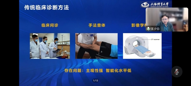 会上,王少白教授作了题为“运动医疗数智化诊疗”的专题报告,他从运动医学数智化闭环解决方案引入,介绍了高速双平面荧光透视系统及其在脊柱参数测量、关节运动学动态检测等领域的应用。此外,他还针对数字化精准治疗和康复评估,在运动医学手术机器人、多模态数字化康复评估训练系统研发等方面取得了一定的技术突破,实现了体育、医学、工程的完美融合。报告结束后,与会师生同王少白教授进行了互动交流,大家针对报告内容踊跃提问、积极发言。