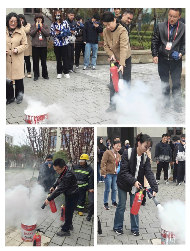 随后,三名退伍党员员工利用各自当兵期间所学的相关消防知识,在现场耐心的给师生们科普了常用灭火器的种类、如何正确使用灭火器、如果遇到火灾我们应该如何自救等相关消防逃生知识,现场部分师生也亲自使用灭火器进行现场灭火演练。
