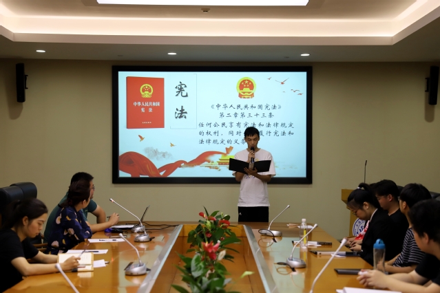 为弘扬宪法精神,培养员工的宪法理念,增强员工的宪法意识,提高学习宪法的积极性。9月17日,太阳成集团tyc9728员工党支部在南苑影像楼306会议室举行“学宪法,讲宪法”演讲比赛。公司党总支书记刘红,党总支宣传委员、专职党建员谭松珊,员工党支部书记孙佳鸣出席比赛并担任评委,员工党支部党员及发展对象参加活动。