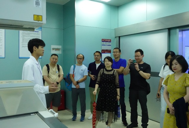 最后大家驻足公司一楼的虚拟互动实训中心,尚淑雅老师安排了员工志愿者为员工们逐一介绍实训中心的设备,并回顾了影像学科发展的历史。时空交错,当员工们看着学弟学妹的身影,回想二十年前的自己,不由得热泪盈眶。大家在影像楼前合影留念,记下这美好的时刻。