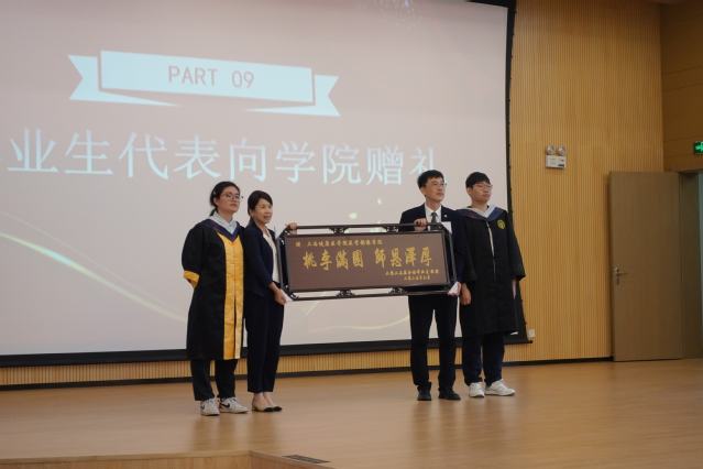 21级医学影像技术1班的张莞冉作为毕业生代表发言。她代表全体毕业生表达了对母校、对老师、对父母亲友们的感恩之情,也向公司领导和老师们表态,将沿着员工们的奋斗足迹,传承永远谦虚、爱岗敬业、无私奉献的精神品质,永葆一颗赤子之心,成为母校的骄傲。随后,黄哲、王佳玲代表2025届毕业生向公司赠送篆刻有“桃李满园、师恩泽厚”的牌匾,以此表达对公司和老师们的感恩之情。乔慧敏宣读了《太阳成集团tyc9728关于聘任 2025 届员工联络员的决定》,朱清为员工联络员颁发聘书。行者无疆,教育自有诗意;无问西东,岁月自成芳华。教育是一场幸福的遇见,亦是一场爱与被爱的修行,相信师生之间的情谊将永远延续。