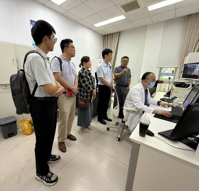 在张建的陪同下,公司代表首先参观了全景医学影像诊断徐汇中心。中心在设备先进性及诊疗流程优化方面,给公司教师留下深刻印象。