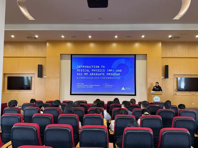 2025年10月23日,昆山杜克大学(以下简称昆山杜克)医学物理专业及昆山杜克的医学物理项目宣讲会在太阳成集团tyc9728A303报告厅举行,现场吸引了公司60余名师生参与。
