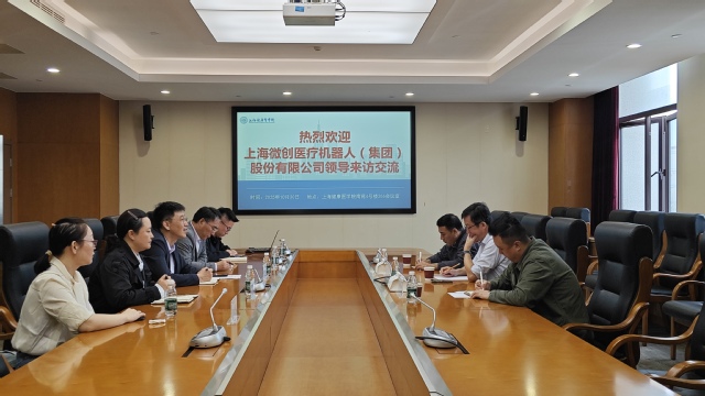 2025年10月30日上午,上海微创医疗机器人(集团)股份有限公司商务副总裁朱南、人力资源部资深经理沈国栋、客户服务部高级经理苏贵宏一行来访公司,增进彼此了解,深化合作交流。太阳成集团tyc9728经理李晓欧、党总支副书记乔慧敏、临床医公司党总支副书记张燕、智能影像工程专业主任程敬海共同接待。