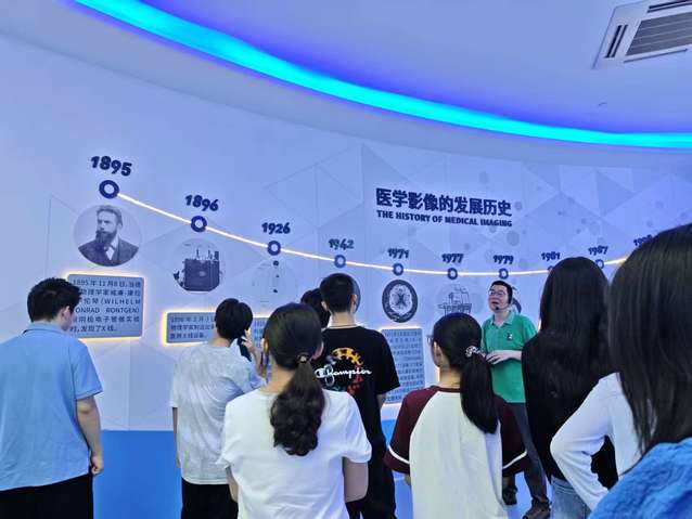 医学影像技术教研室主任彭文献和智能影像工程教研室主任程敬海将专业介绍融入到专业导入课当中,详细介绍专业发展和人才培养方案,帮助员工加强专业认知、树立专业理想。陈珊珊和肖寒两位老师带领员工了解实验项目和实验设备,走进实验室参观学习,进一步感受专业魅力。医学影像技术专业还特别邀请公司第一任董事长、黄钢教授为新生上课,黄教授用生动的语言讲授专业的内容,深入浅出,极大地激发了同学们对专业的学习热情。