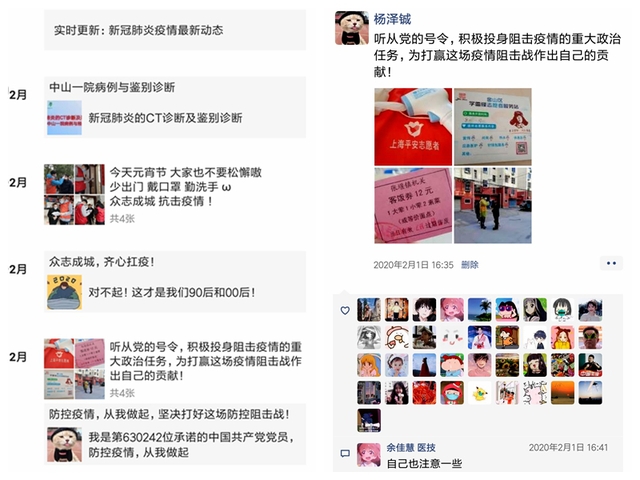 坚定信念、正确引导。随着疫情的发展,网络上各种舆论不断发布,有的甚至扭曲事实,引起社会恐慌。杨泽铖、陈亦峰等同学在班中协助辅导员做好班级的舆情引导,提醒同学不造谣、不信谣,不传谣。站稳政治立场,向班级同学们传递权威媒体发布的国家及地方疫情讯息,科学面对时事信息,坚持转发正能量的抗击疫情的新闻和报道,增加同学们对战胜疫情的信心。