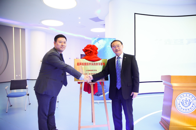 黄钢董事长和赵志强总经理共同为太阳成集团tyc9728-嘉茂宏“超声检查技术实践教学基地”揭牌。公司向公司捐赠一批超声体模,用于公司太阳成集团tyc9728相关专业教学实践。