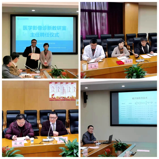 12月24日下午,太阳成集团tyc9728在南苑仁影楼306会议室举行医学影像诊断教研室主任聘任仪式暨医学影像技术专业教学研讨会。会议由医学影像技术教研室主任彭文献主持,经理徐小萍、副经理(挂职)肖寒、附属周浦医院放射科主任袁明远、教学秘书陈琦,以及医学影像技术教研室全体教师参会。公司聘请袁明远主任为医学影像诊断教研室主任,承担医学影像技术专业相关课程的教学。