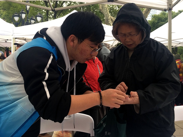 活动当天,共有17位师生风尘仆仆前往鲁迅公园参与志愿服务,天气虽然乍暖还寒,但活动现场人声鼎沸,热闹非凡,呈现出一片暖意浓浓的景象。公司师生根据工作安排,在多个岗位上开展志愿服务。他们以饱满的热情投入到工作中去,对于市民们的咨询耐心回答,不厌其烦地进行讲解;分发健康知识宣传手册,向老人们开展健康知识宣讲,协助医务工作者为市民进行血压、血糖测量,用自己的医学知识回馈基层百姓;跟随公园工作者在园内发放文明游园小贴士,劝阻不文明现象,营造良好游园环境;在排起长队的维修家用电器、免费理发摊位前维持秩序,保证志愿服务能够有序进行。