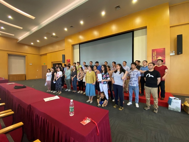 在长达一个月的备赛期间,公司全体教师们表现了良好的集体荣誉感,大家怀揣着为建党100周年献礼的炽热的红心,克服了各种困难,努力协调好公司的各项工作,并放弃周末陪家人的时间加班练习。公司领导高度重视,亲自领颂,并为大家送去夏日的慰问。公司工会、公司办公室以及很多老师们通力配合,精心准备,为比赛做好后勤工作。林剑老师恰逢在外挂职,他克服了种种困难,不畏酷暑,每周从崇明赶回公司为大家指导排练,带领大家取得最后的好成绩。