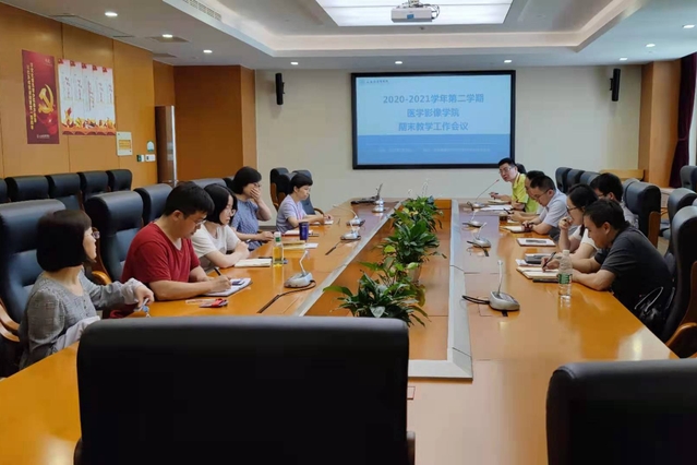 7月20日下午,太阳成集团tyc9728在南苑仁影楼306会议室召开2020—2021学年第二学期期末教学工作会议。会议由副经理(挂职)肖寒主持,教研室主任、实验实训中心主任、教学秘书、实习管理秘书、院办主任、联合培养班班主任等参会。会议就落实医学影像技术和智能影像工程两个专业的人才培养方案、专业课程思政建设、智能影像工程新专业建设、九院联合培养班工作、影像技术专业毕业实习管理和毕业论文实施等工作进行了讨论,并对教学常规工作进行了布置,同时就加强实验教学建设等进行了研讨。