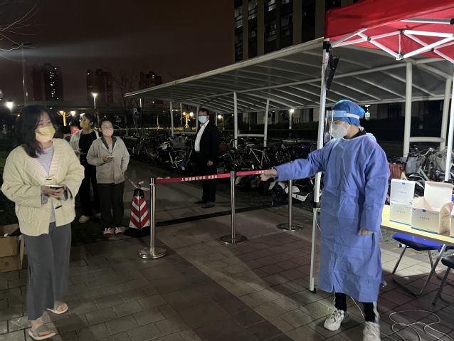 3月15日、16日连续两天晚上,公司对南苑9号楼全体人员进行单人单管鼻拭子核酸检测,当得知检测工作需要志愿者时,楼长王舒心同学第一时间忙碌了起来,她积极协调、组织层长参与核酸检测工作,协助宿管组织好各楼层同学有序下楼参加检测,担任起联络员的角色。夏琳同学、娄怡妃同学、张佳丽同学三位层长主动报名,有效充实检测现场的工作力量,她们穿上防护服、戴上防护面罩,维持现场秩序,引导同学扫描二维码,使得检测工作有条不紊,现场秩序井然,核酸采样工作顺利完成。经过两天晚上的工作,尽管非常劳累,但她们依然积极乐观,精神饱满,她们说:“高考那年,当我们看到如此多的医护人员削发出征时,内心满是感动,也立下了从事医学工作的心愿。当得知需要志愿者时,踏上一线的勇气随之而来,能够参加公司的核酸检测工作,贡献自己的绵薄之力,深感荣幸。新冠无情,可我们从不胆怯。”