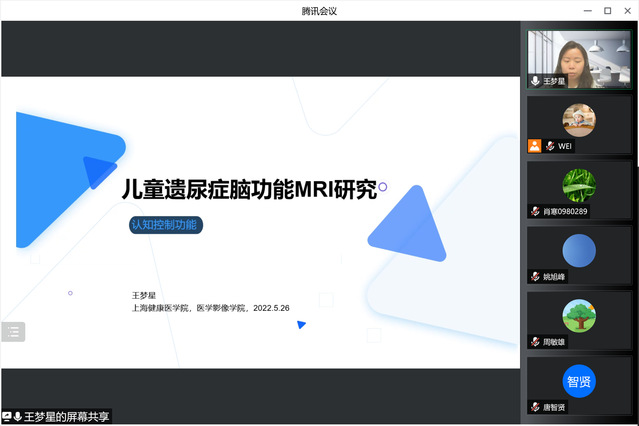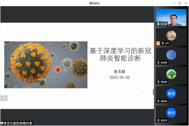 此次汇报由彭文献副教授和王梦星副教授进行了课题分享。彭老师以《基于深度学习的新冠肺炎智能诊断》为题,介绍了一种基于深度学习方法的算法及其在肺部炎症分类中的应用,从研究背景、研究方法和研究结果等方面进行了汇报;王老师以《遗尿儿童认知控制功能研究》为主题,分享了利用脑功能磁共振技术探讨遗尿症患儿认知功能方面的研究,主要涵盖了患儿在静息态、憋尿状态、任务态等多种条件下的脑功能模式。