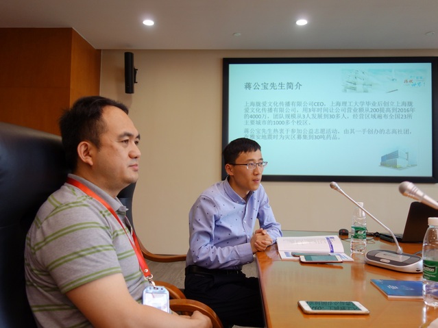蒋公宝先生在创新创业方面有着丰富的经验和独到的见解,在员工时代他就热衷于参加公益活动,其一手创办的志高社团,在雅安地震时为灾区募集到30吨药品。大学毕业后他创立上海胧爱文化传播有限公司,用了短短几年的时间公司营业额从200万增长至上亿元人民币,团队规模也从3人发展到120多人,经营区域遍布全国23个主要城市。